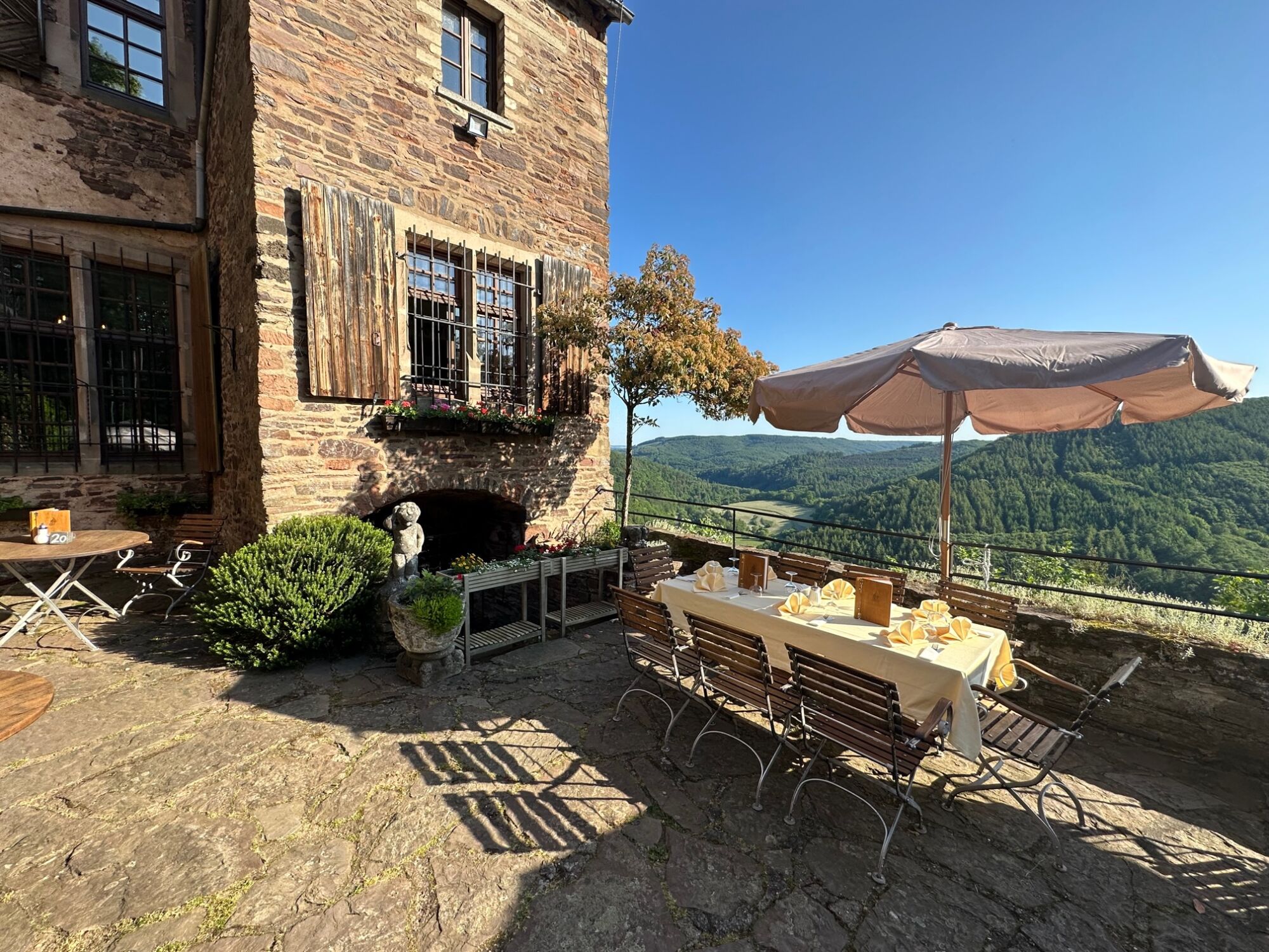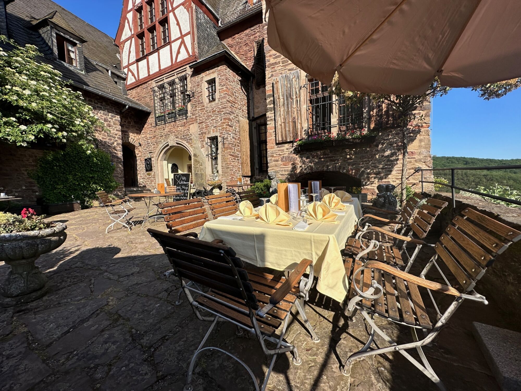 Vanaf de lunchplek rijden wij via Bad Bertrich (wat een mooie plek om even te genieten en rustig rond te lopen) weer binnendoor naar ons hotel dat op eenzame hoogte staat: Burg Arras.