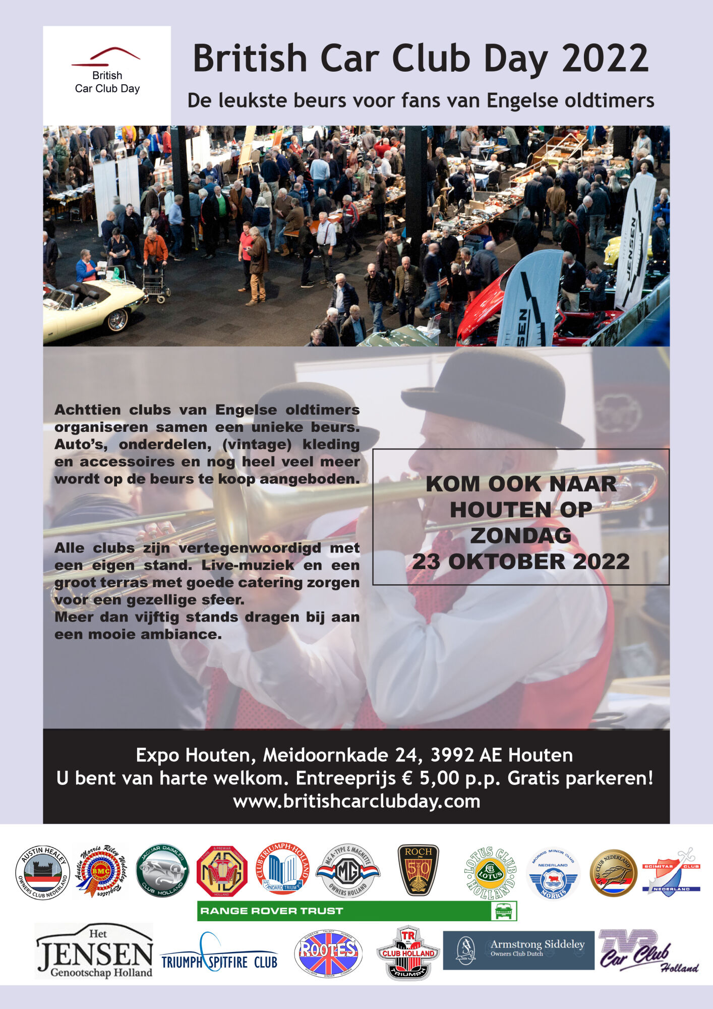 Op zondag 23 oktober 2022 organiseren wij samen met 17 Engelse Autoclubs, voor de 5e keer dit grote British Autoclub festijn: BRITISH CAR CLUB DAY