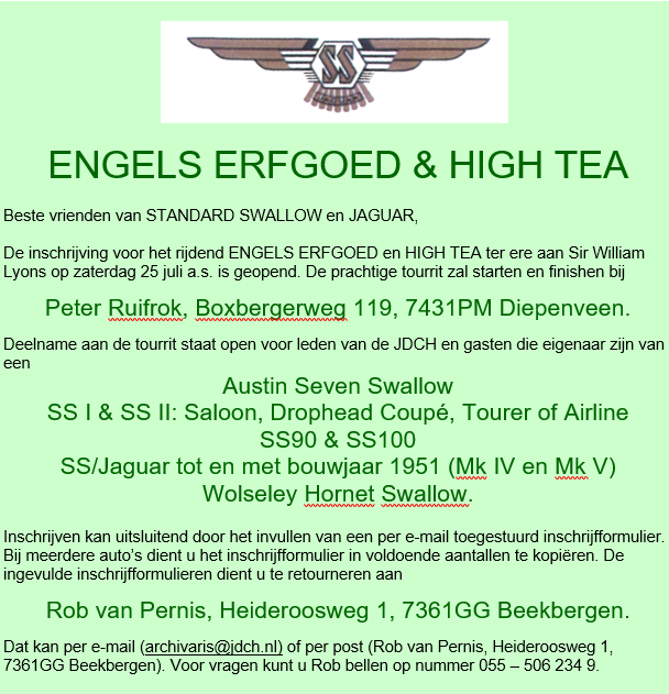 Deelname is alleen mogelijk voor de eigenaren van een Austin Seven Swallow, SS I & SS II: Saloon, Drophead Coupé, Tourer of Airline, SS90 & SS100, SS/Jaguar tot en met bouwjaar 1951 (MK IV en MK V) en Wolseley Hornet Swallow.