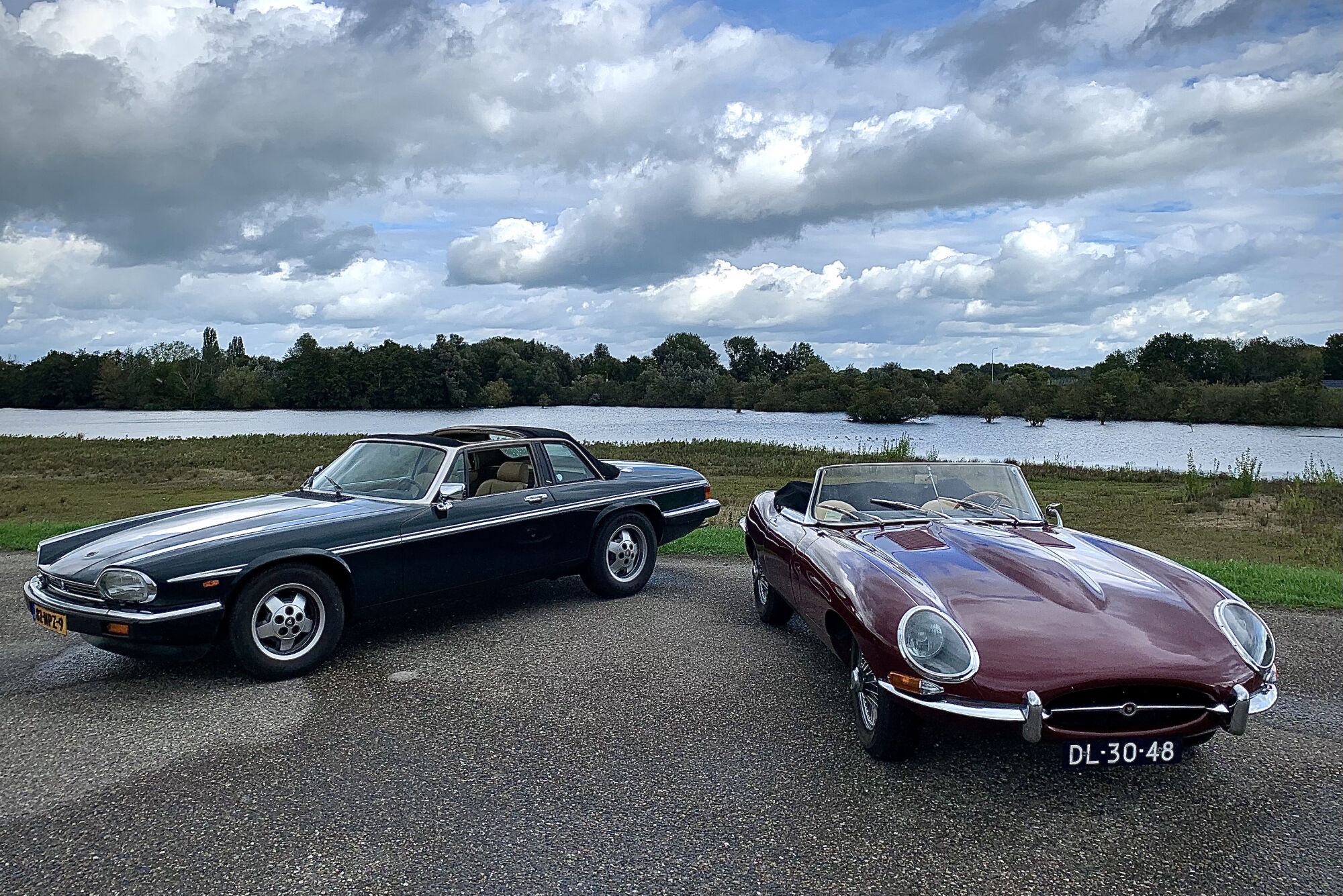 Ongeveer tien jaar later stond mijn afspraak met Rien en zijn Jaguars. Van tevoren wist ik eigenlijk niet of we samen zouden rijden in zijn E-type of XJ-S, ik achter hem aan zou rijden in mijn eigen auto, of dat ik zelf in een van de Jaguars zou mogen rijden. Ondanks dat ik er dus bijna niet op durfde te hopen, maakte ik me de dag voor de afspraak al zorgen of ik wel achter het stuur van de E-type zou passen. Sinds mijn vorige E-type-episode was ik namelijk nog wat centimeters gegroeid, slechts enkele verwijderd van de twee meter (en in de breedte heeft er ook een geringe toename plaatsgevonden sinds mijn studententijd). Eenmaal aangekomen bij Rien was het plan snel gemaakt: ik zou kort plaatsnemen in de XJ-S, terwijl Rien de E-type warm reed en onderweg een stop om te wisselen.