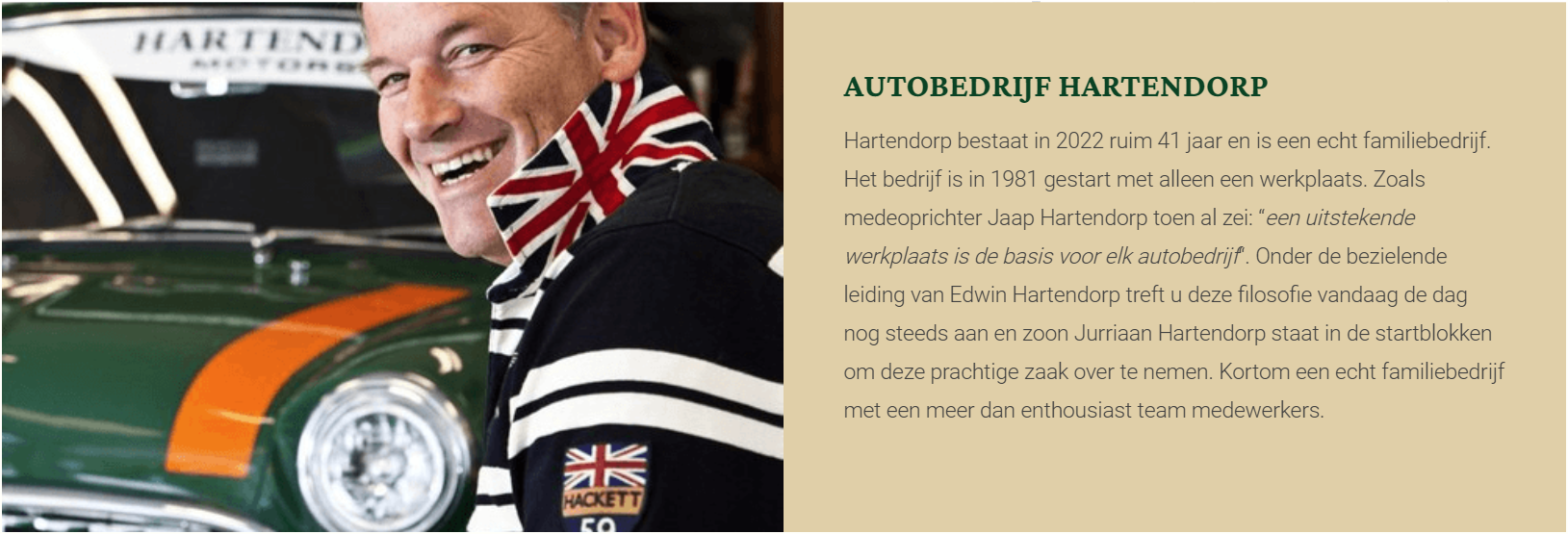 In 2022 hebben British Car Centre Baarn en Hartendorp de krachten, kennis, medewerkers en liefde voor leuke auto’s gebundeld en is British Car Centre Hartendorp een feit! British Car Centre Hartendorp aan de Baarnsche dijk 7 in Baarn is hét autobedrijf waar de liefhebbers van Britse hedendaagse auto’s en klassiekers komen voor reparatie en onderhoud. Wij hebben een prachtige showroom op twee verdiepingen waar wij een wisselende voorraad met hedendaagse occasions en Britse klassiekers hebben.