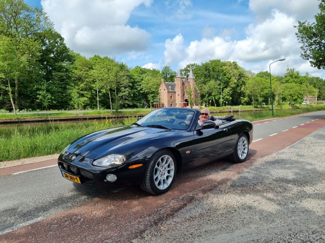 Mooie Jaguar XKR Convertible, zwart, zwarte kap, zwart leren bekleding.